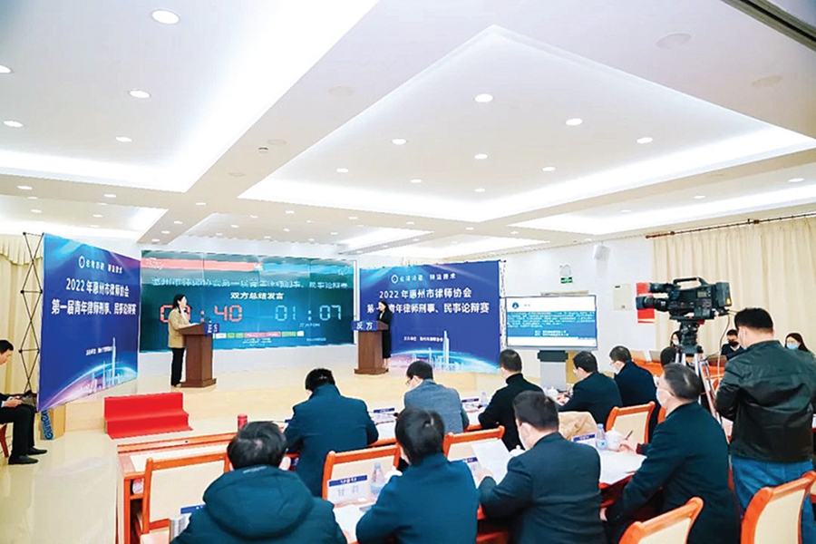 我市首屆青年律師刑事、民事論辯賽現(xiàn)場。圖片由惠州市律師協(xié)會提供