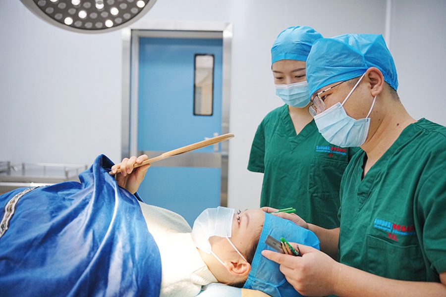醫(yī)美手術(shù)中,王光任醫(yī)生(右一)與患者進(jìn)行前期溝通;葜萑請笥浾咧荛 攝