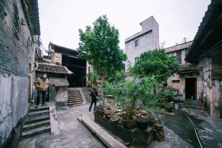 此處為張氏族人聚居地,原名“木荊岡”。據(jù)說,從宋代起,張氏就在此生活,到晚清,張氏在此營建的建筑面積達(dá)三萬平方米。這片規(guī)模宏大的建筑順著木荊崗的山勢(shì)、由南至北分布,分為張氏宗祠、將軍第、桃園三大部分。以張氏宗祠為中心的建筑群,是張氏族人的最早居住地,一旁的將軍第為清代道咸年間大鵬協(xié)臺(tái)、代理虎門水師提督張玉堂的住宅。將軍第旁,則為桃園,為張玉堂之孫張靖山所筑。