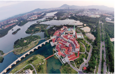 “東莞新八景”之首。8平方公里的松山湖,四周峰巒環(huán)抱,湖面煙波浩渺,湖鳥輕鳴,雨霽虹出時(shí)分,云蒸霞蔚。42公里的濱湖路曲徑通幽,路旁是綠意嫣然的荔枝林和各種果園,峰巒綠樹倒映湖底,波光煙雨青翠流蕩。