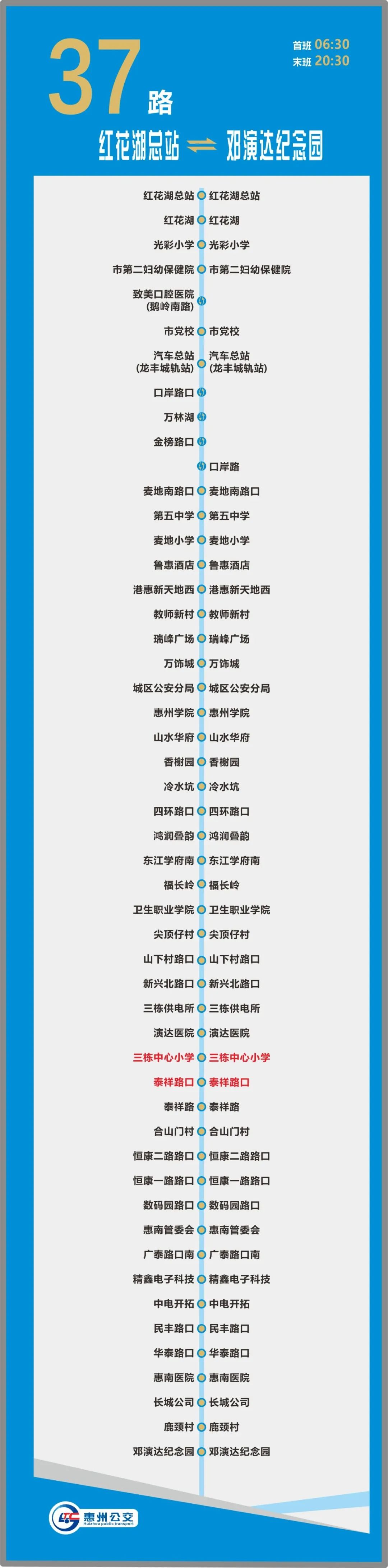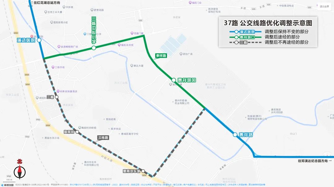 調(diào)整后途徑路段:調(diào)整37路線路恢復行駛演達路、泰祥路路段,取消繞行三棟路、泰安路。