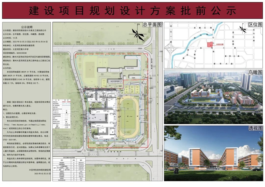 2月23日,大亞灣住房和規(guī)劃建設(shè)局發(fā)布《大亞灣區(qū)第六中學(xué)規(guī)劃設(shè)計(jì)方案批前公示》,學(xué)校緊鄰西區(qū)第三小學(xué),占地約3.8萬平。