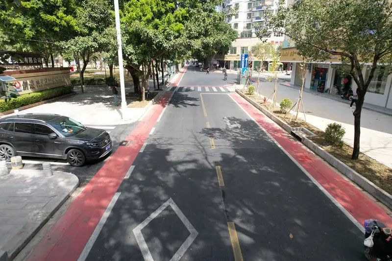 近日,記者來到改造后的銀嶺路,看到新鋪設(shè)的瀝青道路平坦寬闊,交通標(biāo)線清晰醒目,新增非機(jī)動(dòng)車道讓行車變得更加有秩序,整潔暢通的交通環(huán)境讓人耳目一新。行人道也從原本的紅磚換成了大理石路面,兩旁的商鋪進(jìn)行了外立面統(tǒng)一更新,大大提高整體道路品質(zhì)。