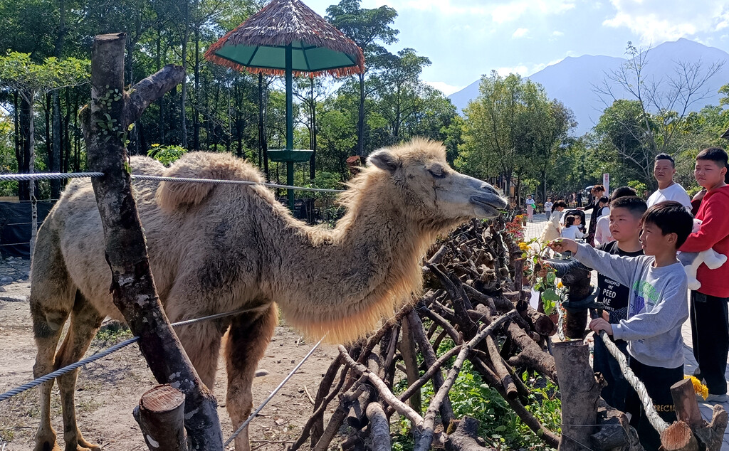 游客在浮生六季生態(tài)園與動物親切互動。惠州日報記者侯縣軍 攝