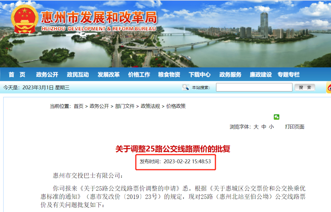 25路(惠州北站至伯公坳)公交線路票價(jià)從發(fā)文之日起執(zhí)行,原票價(jià)標(biāo)準(zhǔn)同時(shí)廢止。
