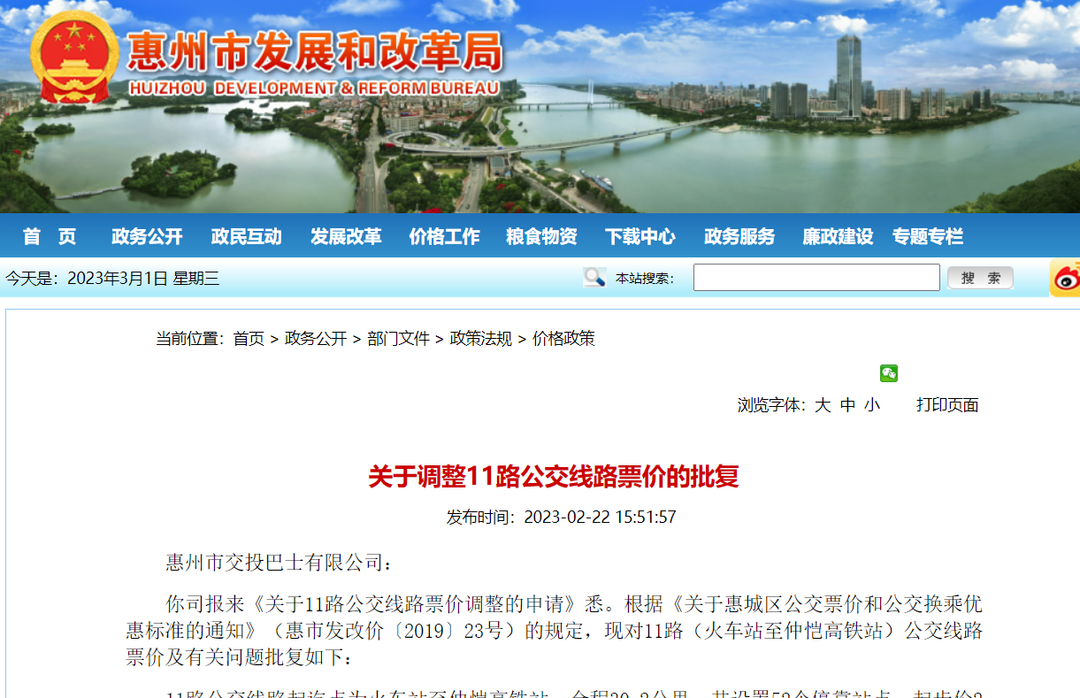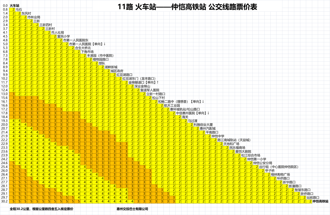 11路(火車站至仲愷高鐵站)公交線路票價(jià)從發(fā)文之日起執(zhí)行,原票價(jià)標(biāo)準(zhǔn)同時(shí)廢止。