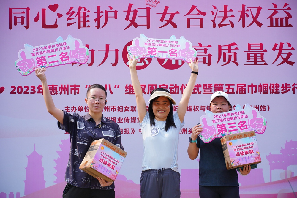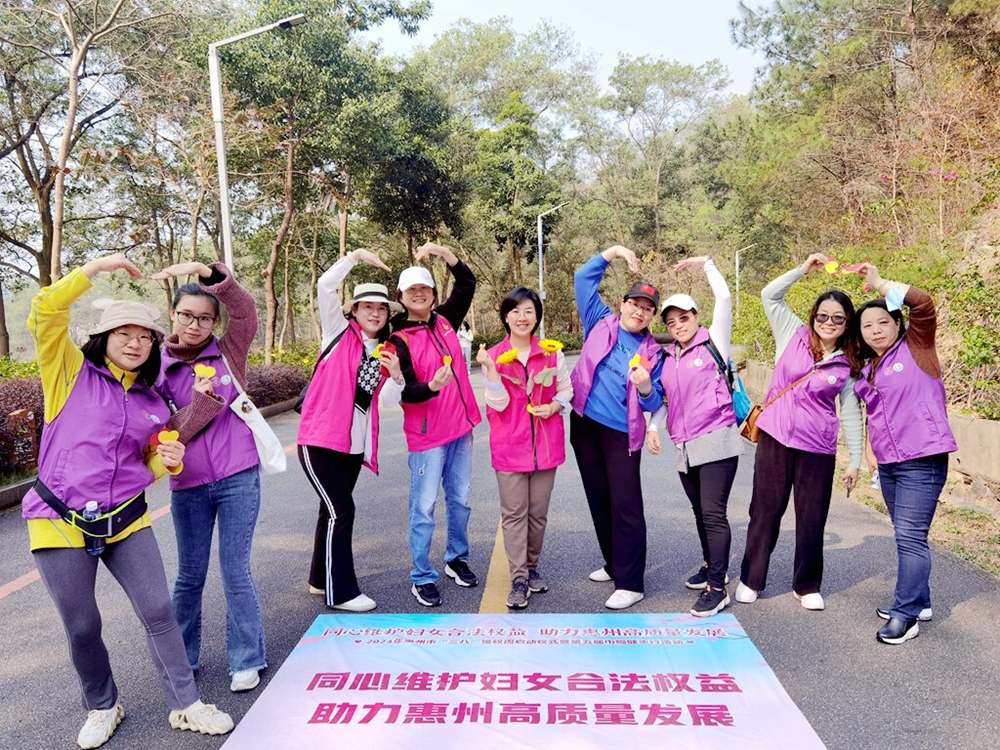 三月沐春風(fēng),巾幗健步行。3日上午,“同心維護(hù)婦女合法權(quán)益 助力惠州高質(zhì)量發(fā)展”-2023年惠州市“三八”維權(quán)周啟動儀式暨第五屆巾幗健步行活動舉行,全市近千各界婦女姐妹歡聚在美麗的紅花湖畔踏春而行,通過綠色低碳健步走、團(tuán)隊(duì)花式照、有獎問答、互動游戲等形式,展現(xiàn)婦女“半邊天”自信形象,推動全社會形成關(guān)愛婦女、尊重婦女、維護(hù)婦女合法權(quán)益的良好社會氛圍,進(jìn)一步促進(jìn)家庭文明幸福、社會和諧穩(wěn)定。