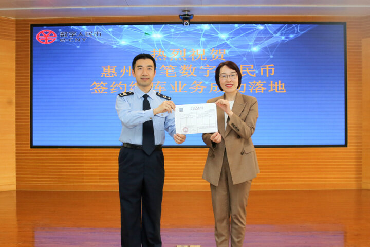 惠州首筆數(shù)字人民幣繳納稅費業(yè)務(wù)成功落地。