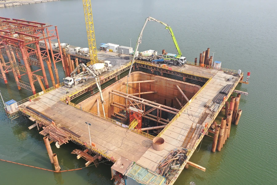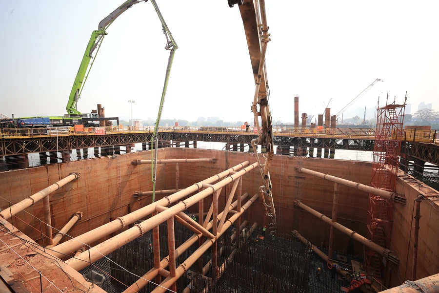 3月4日下午4時許,隨著最后一車混凝土注入承臺,歷經(jīng)57個小時的連續(xù)施工,由中鐵廣州局承建的鵝城大橋項目主橋ZP3承臺順利完成澆筑。據(jù)悉,此次澆筑的承臺是鵝城大橋最重要的控制性節(jié)點(diǎn)工程,共計澆筑混凝土4181方,為后續(xù)鋼梁架設(shè)施工奠定了堅實(shí)基礎(chǔ)。