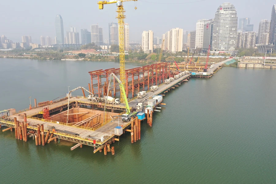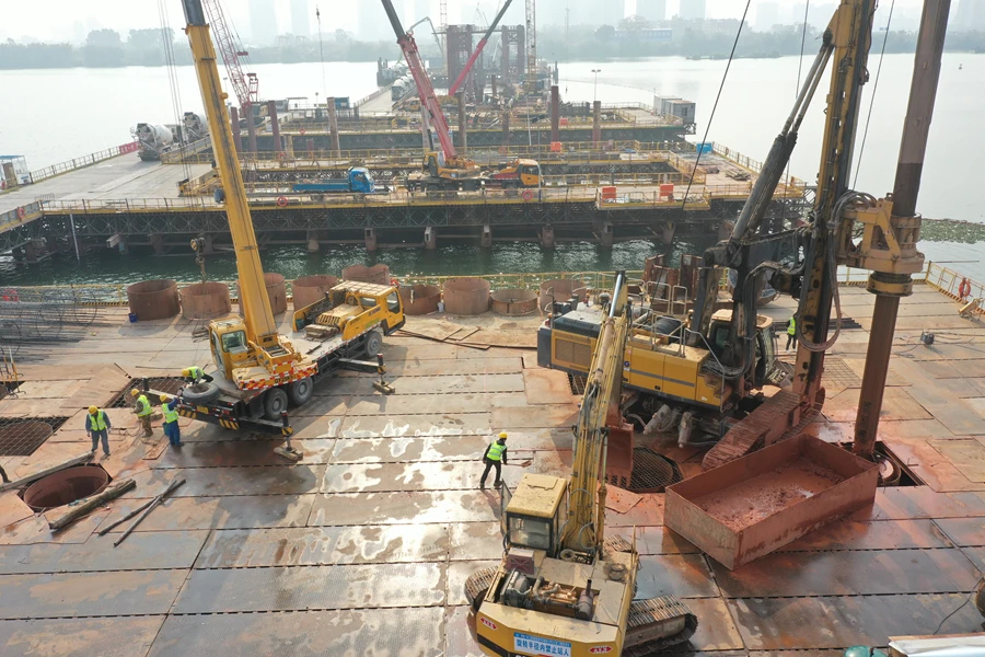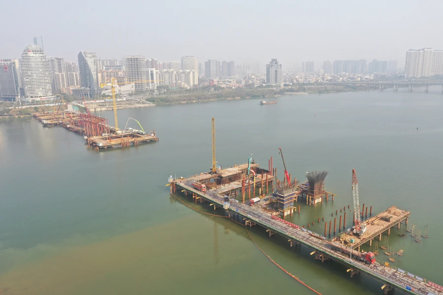鵝城大橋位于惠州市惠城區(qū),起點(diǎn)順接惠州大道,主線下穿菊花路,途經(jīng)期湖塘路,跨東江后,沿規(guī)劃同福路向東,終點(diǎn)為現(xiàn)狀江東一號路。大橋主線全長2974米,按雙向6車道設(shè)計。全橋共有180根樁基,其中主橋90根樁基已全部完成計劃明年建成通車。