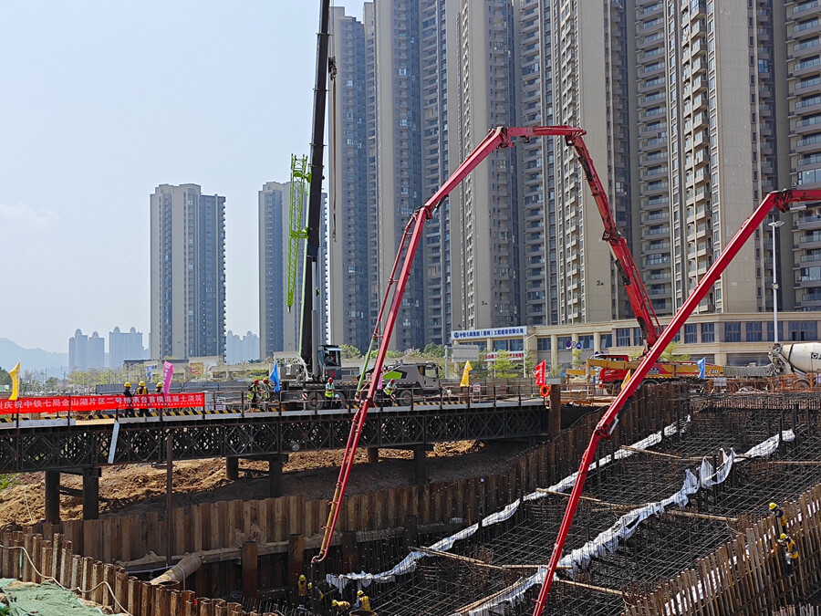 3月5日12時(shí),由中鐵七局承建的惠城區(qū)金山湖二號(hào)橋承臺(tái)首;炷灵_始澆筑。隨著兩臺(tái)混凝土天泵車噴涌而出的混凝土流向承臺(tái),標(biāo)志著金山湖二號(hào)橋由“看不見、摸不著”的水中地下施工轉(zhuǎn)向“看得見、摸得著”的地上施工,整個(gè)工程進(jìn)入施工提速階段。