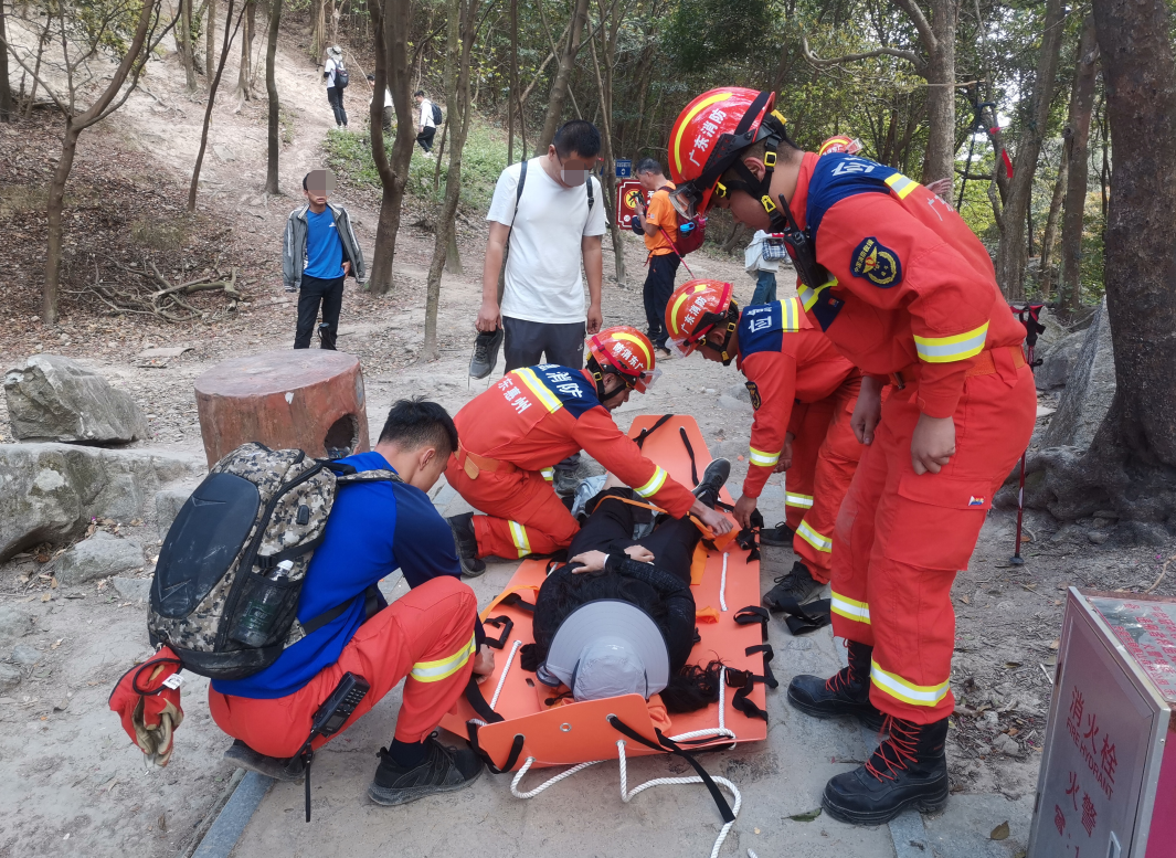 消防員到達白云障山腳時,經(jīng)聯(lián)系報警人和詢問景區(qū)負責人得知,受傷人員為一名30歲左右的女子,在山頂站在石頭邊拍照時不小心摔倒掉落,左腳摔傷脫臼,情況比較危急,無法正行走。