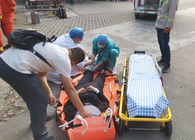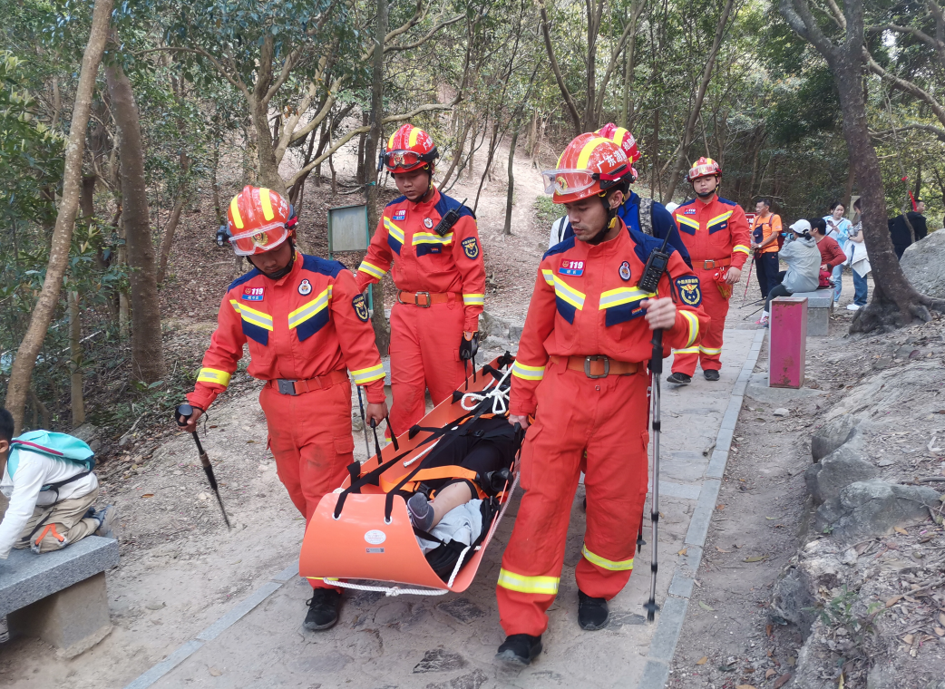 經(jīng)過一個多小時的輪流抬送,消防員成功將傷者安全運送下山腳,并交由現(xiàn)場救護車趕往醫(yī)院救治。
