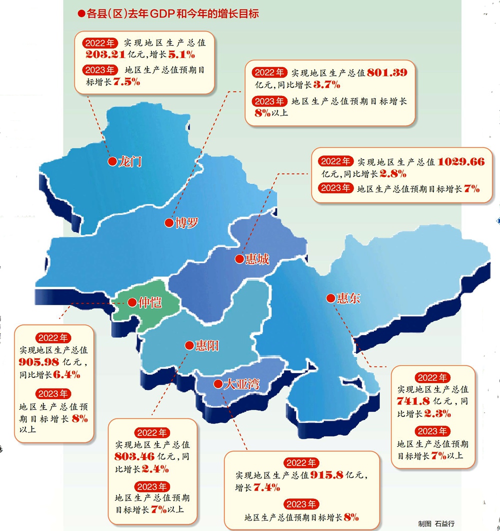 惠城把優(yōu)化營(yíng)商環(huán)境作為“一號(hào)改革工程”,助力大企業(yè)加快發(fā)展壯大,扶持中小微企業(yè)穩(wěn)健發(fā)展;惠陽(yáng)瞄準(zhǔn)產(chǎn)業(yè)高端、產(chǎn)品終端、科技前端,加快延鏈補(bǔ)鏈強(qiáng)鏈;博羅聚焦四大主導(dǎo)產(chǎn)業(yè),集中力量培育產(chǎn)業(yè)“鏈主”;惠東加快建設(shè)大灣區(qū)清潔能源中心,規(guī)劃布局抽水蓄能、儲(chǔ)能電池、冷能、氫能等產(chǎn)業(yè);龍門深度融合文旅文創(chuàng),積極建設(shè)環(huán)南昆山森林溫泉度假旅游產(chǎn)業(yè)帶;大亞灣充分發(fā)揮重大項(xiàng)目支撐引領(lǐng)作用,加快?松梨诨葜菀蚁、中海殼牌三期等項(xiàng)目建設(shè),推動(dòng)恒力PTA項(xiàng)目、中海油芳烴項(xiàng)目全面達(dá)產(chǎn)見效;仲愷加強(qiáng)創(chuàng)新主體培育,全年凈增高企230家,存量突破1130家……