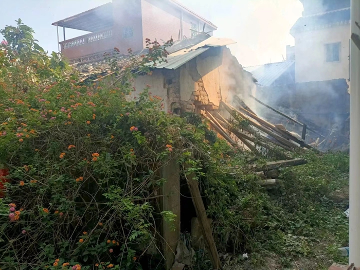 現(xiàn)場消防員發(fā)現(xiàn),著火建筑物為老式土磚房,火勢處于起初階段,開始向四周蔓延。屋內(nèi)存放著大量的木材、廢舊家具,一旦火勢擴散后果不堪設想。