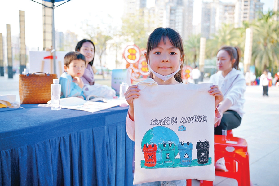 現(xiàn)場的“變廢為寶”互動區(qū)吸引了許多小朋友熱情參與,大家拿起畫筆彩繪環(huán)保袋、用一次性紙杯制作工藝品、用礦泉水瓶和麻繩DIY個性花瓶……現(xiàn)場洋溢著歡快的笑容。
