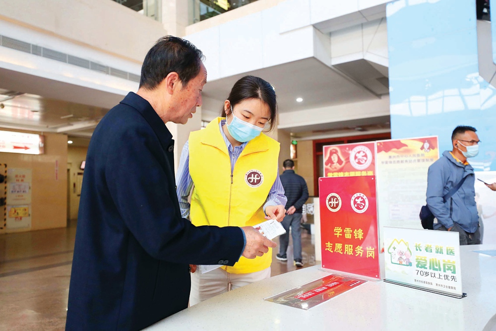 醫(yī)院志愿者熱心幫助市民就醫(yī);葜萑請笥浾邚埶嚸 攝