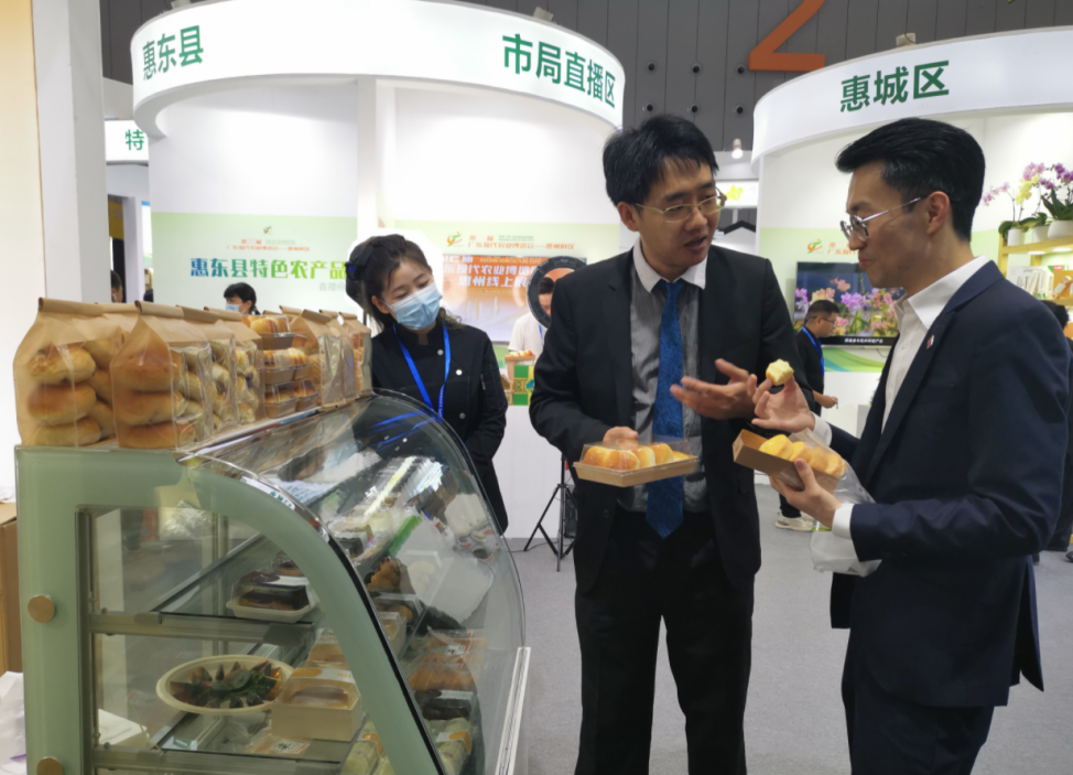 在惠州展館“羅浮御膳”展位,蛋糕和皮蛋等產(chǎn)品同樣受到關(guān)注!拔覀兊牡案馐褂没輺|的馬鈴薯、惠東大米和雞蛋等,接下來(lái)計(jì)劃采購(gòu)本地的荔枝、青棗、芒果、紫薯等,做成具有本土特色的預(yù)制菜產(chǎn)品!被葜菔袠(lè)夫農(nóng)業(yè)科技有限公司副總經(jīng)理董平天介紹,該公司目前有300多種產(chǎn)品,接下來(lái)會(huì)把惠州本土產(chǎn)品與預(yù)制菜相結(jié)合,讓“惠州味道”走向全國(guó)。