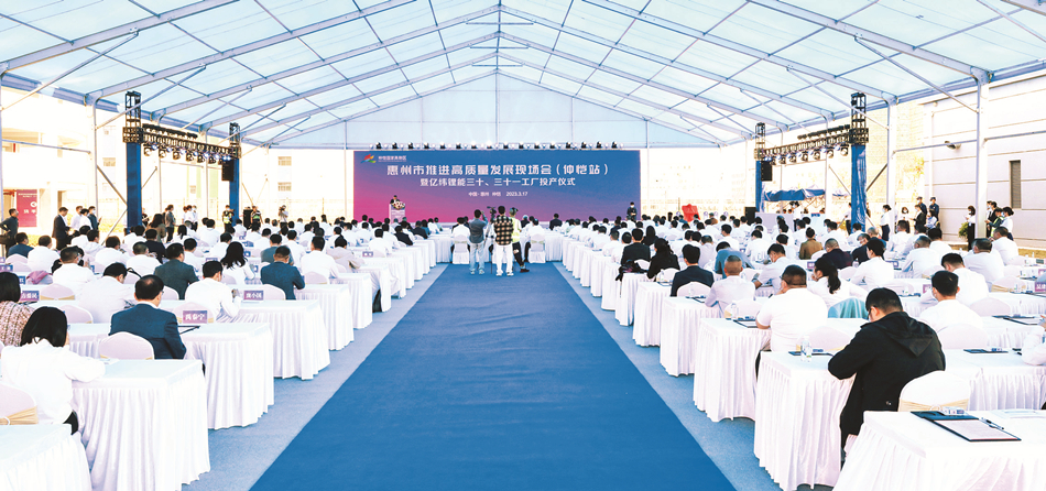 位于潼湖生態(tài)智慧區(qū)的億緯鋰能國際化新能源生態(tài)產(chǎn)業(yè)園,更是朝氣蓬勃。3月17日,惠州市推進(jìn)高質(zhì)量發(fā)展現(xiàn)場會(仲愷站)暨億緯鋰能第三十、三十一工廠投產(chǎn)儀式在這里舉行,工廠投資總額逾31億元,主要生產(chǎn)動力電池,設(shè)計產(chǎn)能12.5GWh(吉瓦時,也稱千兆瓦時),預(yù)計年產(chǎn)值超96億元。至此,加上去年及前年投產(chǎn)的第二十八、二十九工廠,億緯鋰能國際化新能源生態(tài)產(chǎn)業(yè)園初步建成。