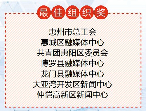 據(jù)了解,2022年7月15日,由中共惠州市委宣傳部主辦、惠州日?qǐng)?bào)社承辦的“話說惠州”短視頻大賽正式啟動(dòng);顒(dòng)為期半年,共征集展播參賽作品近150條,成為當(dāng)年惠州關(guān)注度最高、影響力最大的城市形象主題短視頻宣傳活動(dòng),獲得社會(huì)各界廣泛好評(píng)。
