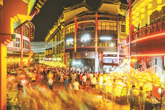 每個夜晚,燈火輝煌的水東街人頭攢動。這條剛上榜國家級旅游休閑街區(qū)的歷史文化街區(qū),短短730米距離卻見證著東江商埠風(fēng)云與多元文化交匯的源遠(yuǎn)文脈。白天,延綿的騎樓建筑令人眼花繚亂,夜幕華燈下,夜演、夜讀、夜游、夜展、夜購、夜宴、夜市、夜宿等為一體的文旅新“夜”態(tài),造就千年“古”商埠煥發(fā)“新”魅力。513家商家中,有80%以上商戶營業(yè)時間均超過21時。2022年,水東街游客及消費者數(shù)量超過450萬人次,文商旅消費收入近9億元。