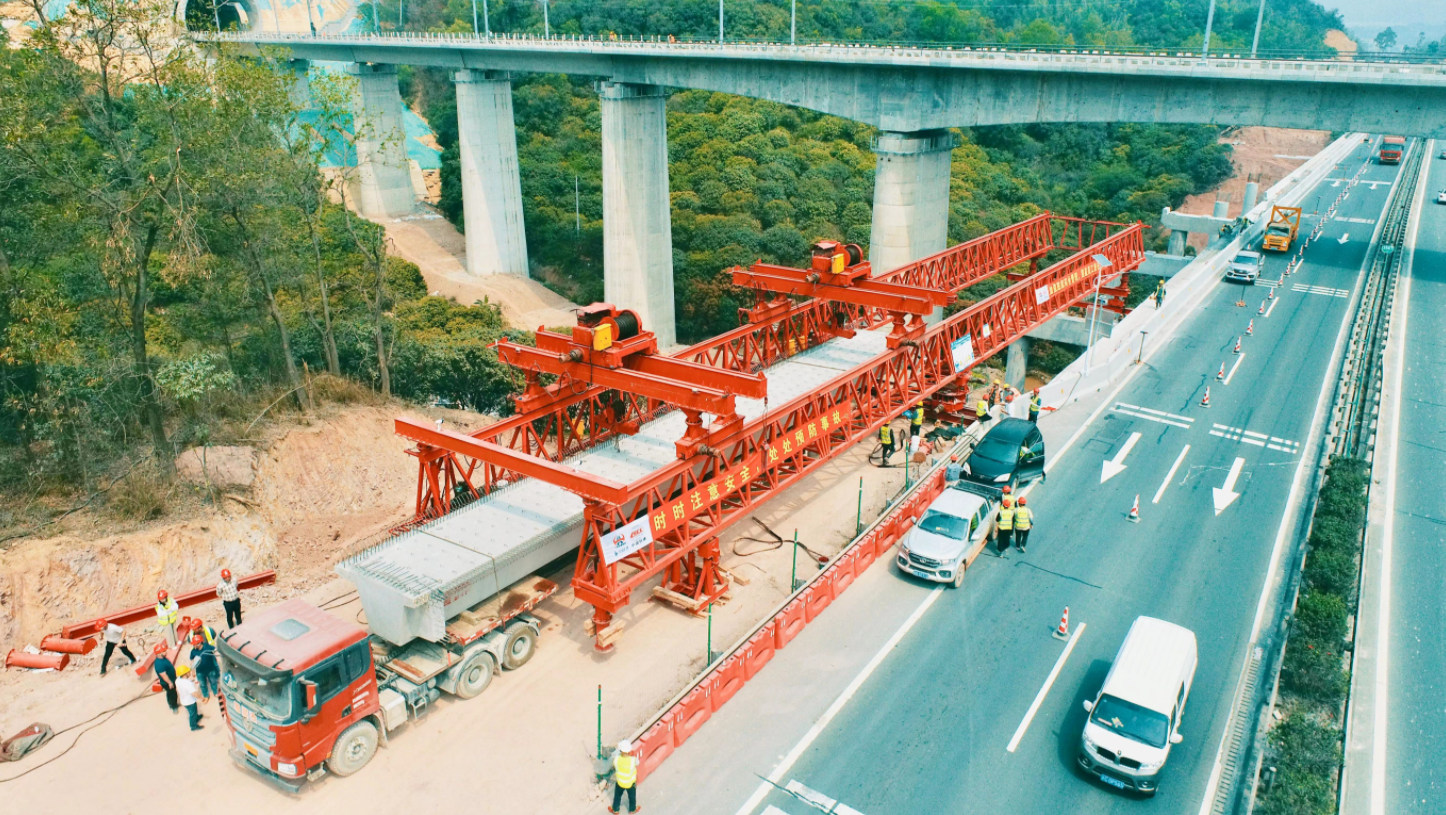 據(jù)介紹,首片架設的預制梁長25米,橋址區(qū)屬山間洼地,且與廣汕鐵路相交,施工面臨多重困難。為保證全線首片梁成功架設,項目部從施工方案評審、報批到安全技術交底進行多次協(xié)調會商,確定最佳運梁路線和架橋機械設備投入。