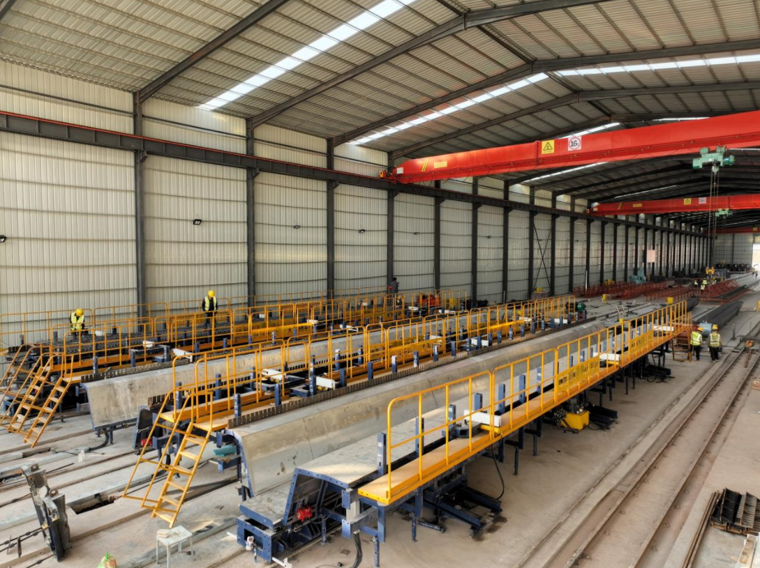 據(jù)悉,惠河高速改擴建項目全線共有大小橋166座,共需架設梁板6839片,預制梁數(shù)量大,涉及雙T梁、小箱梁等多種梁板型號!拔覀兘ㄔO了2個智慧梁場,設置14條環(huán)形生產線,梁板的生產質量和效率大幅提升,有力保證了項目橋梁工程的品質。”鐘純耀介紹,在智慧環(huán)形生產線上,梁板的鋼筋籠制作、混凝土澆筑、蒸汽養(yǎng)生等所有工序都由機械自動完成,施工精確度和生產質量得到充分保證,相比人工制梁效率提升近3倍,每片梁生產時間節(jié)省約5天。