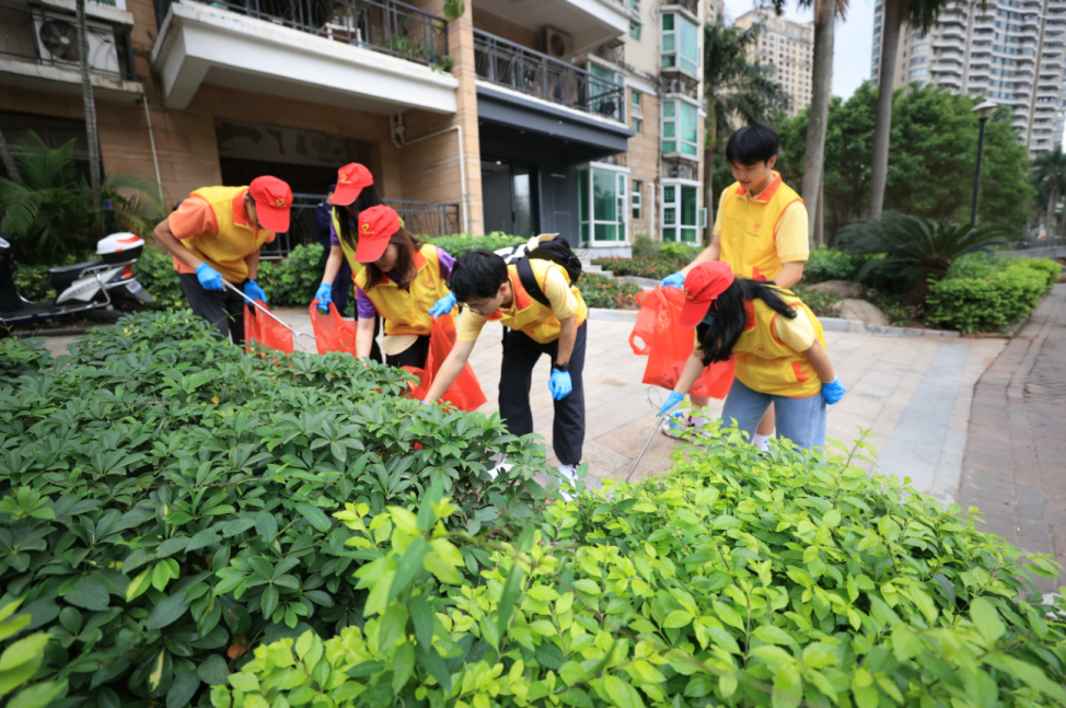 惠州學(xué)院學(xué)生在學(xué)院周邊小區(qū)撿跑。