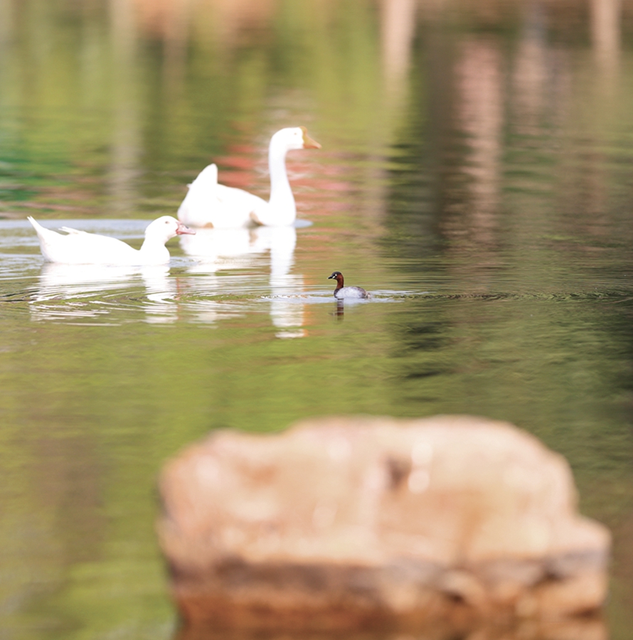 我有嘉賓 鵝、鴨、小鷿?jì)e也在湖中見證了這一場秀春。