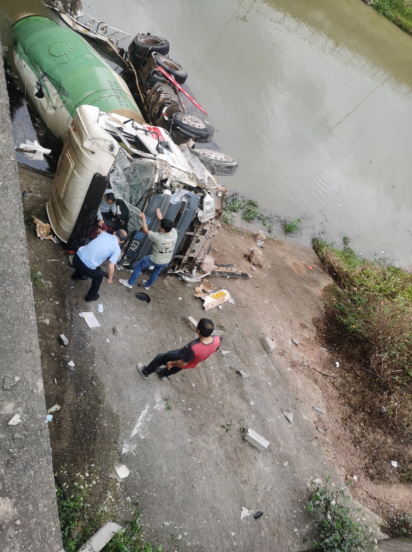 “之前車開得好好的,進(jìn)入輔路沒多久就聽到巨響!笔Y加虎說,3月24日上午,他和同事曾瑩一起前往仲愷高新區(qū)開展廢水“零排放”執(zhí)法行動(dòng)。事發(fā)前,他們的車跟在攪拌車后面,前后也就相差30多米的距離。進(jìn)入輔路準(zhǔn)備右轉(zhuǎn)上橋的時(shí)候,看到前面的攪拌車撞到停在橋上的車后,沖破圍欄掉到河里去了。