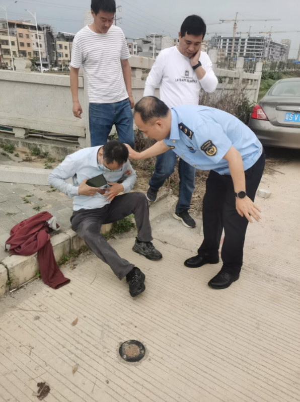 哐——當(dāng)……連貫的幾聲巨響打破了仲愷高新區(qū)東江高新科技產(chǎn)業(yè)園澳背渠周邊的寧靜。一輛水泥攪拌車右轉(zhuǎn)上橋時(shí),不慎掉入河中,司機(jī)受傷被困車內(nèi),油箱受到撞擊開始漏油……危急關(guān)頭,恰巧路過的惠州市生態(tài)環(huán)境局執(zhí)法支隊(duì)一大隊(duì)大隊(duì)長蔣加虎和同事曾瑩與路人一起,在確保司機(jī)安全的情況下,于10分鐘內(nèi)完成營救。