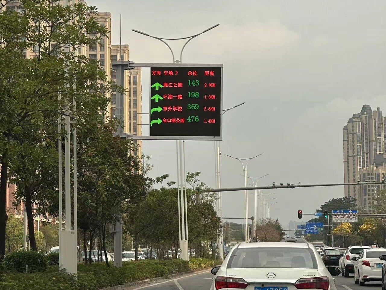 市民可以通過道路邊上誘導屏的指示查看停車場剩余空位。