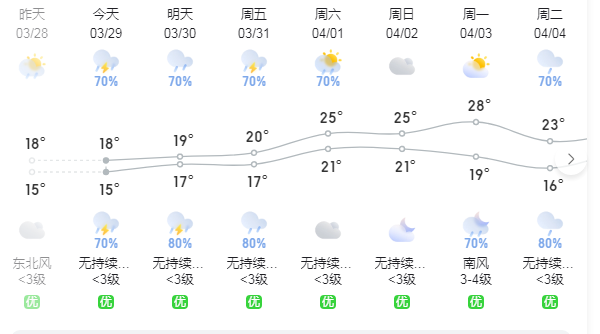 4月1日-3日,陰天,有分散陣雨或雷陣雨,氣溫繼續(xù)回升。