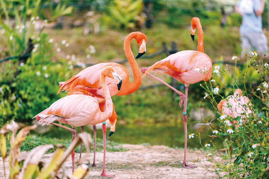 不同品種的火烈鳥分開飼養(yǎng),毛色光彩奪目。
