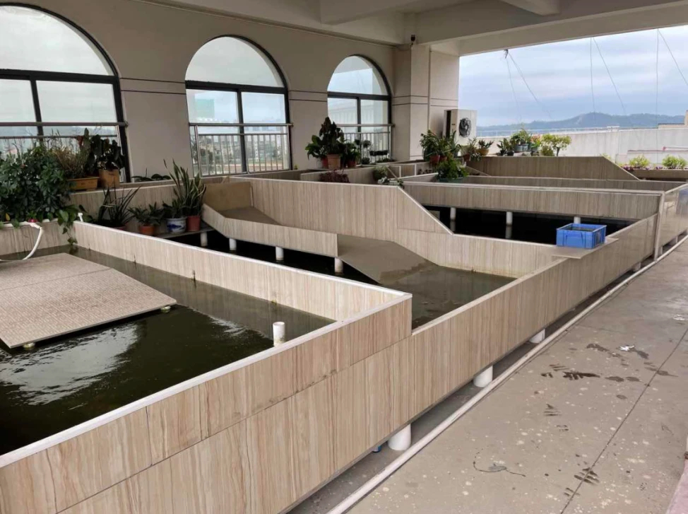 市漁業(yè)研究推廣中心龜鱉類室外救護池。