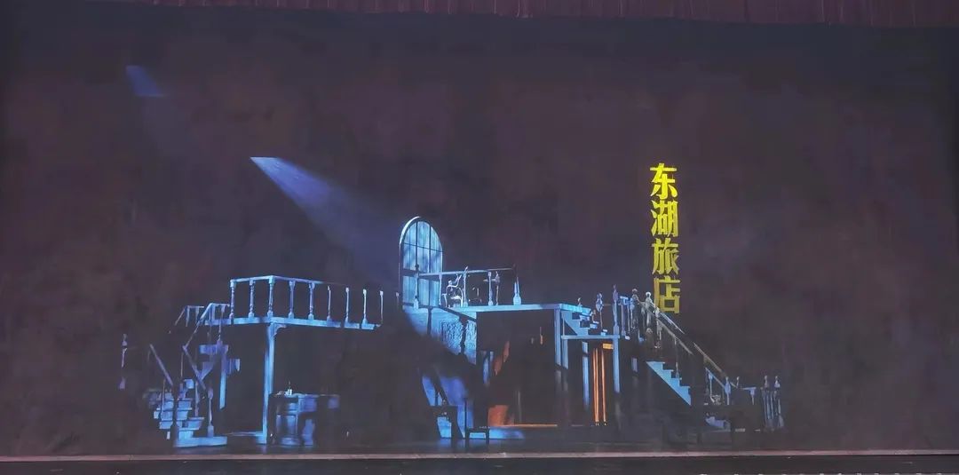 大幕拉開,上個世紀四十年代中西結合的廣府特色躍然臺上,中式藤編桌椅、西式沙發(fā)座鐘、首飾盒、高腳杯、茶壺……處處都透露著講究,把觀眾帶回那個硝煙四起的年代。舞臺上,充分而巧妙地運用東湖旅店的局部空間,通過服飾、道具還原當時的質(zhì)感,達到舊報紙照片的視覺效果。原定的營救計劃突然被打破,闖入旅店的各路人馬面目模糊,敵我難分。東湖旅店的東家羅衡(聶遠飾演)機智對應,在短時間內(nèi)找到兇手,為營救任務劈開一條生路。