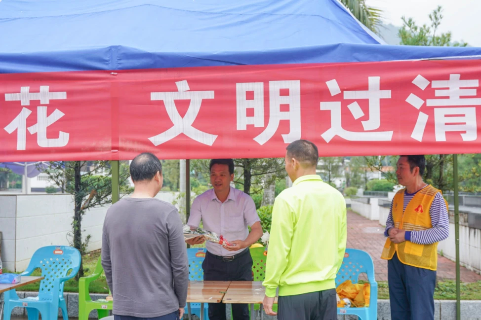 惠州日報訊 (記者游璇鈺)4月1~2日,迎來清明節(jié)前的一個祭掃“小高峰”。記者在惠州市殯儀館看到,現(xiàn)場有很多忙碌的“黃馬甲”,他們放棄周末休息時間,一邊幫助維護(hù)現(xiàn)場秩序,一邊勸導(dǎo)文明祭掃,提倡“紙錢換鮮花”,共創(chuàng)綠色環(huán)境。