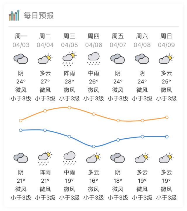 4日,陰天,早晚有輕霧,22~26℃;5日,陰天,有雷陣雨局部大雨,23~26℃;6日,中到大雨局部暴雨,20~23℃;7日,分散陣雨轉(zhuǎn)陰天,18~22℃;8日,陰天到多云,19~24℃。
