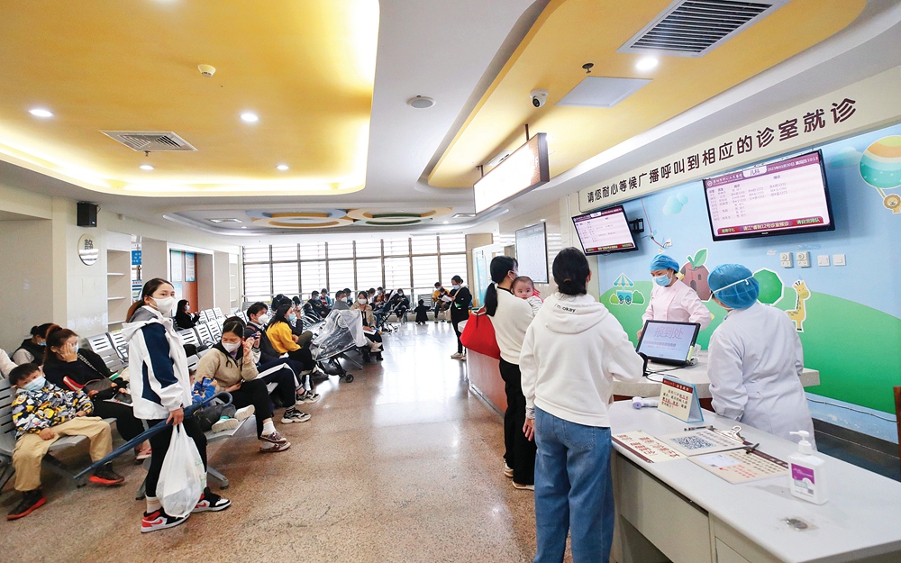 近日,記者在市中心人民醫(yī)院看到,兒科診區(qū)候診患者很多,家長們帶著孩子來就診,普遍反映孩子有發(fā)熱、咳嗽等癥狀。