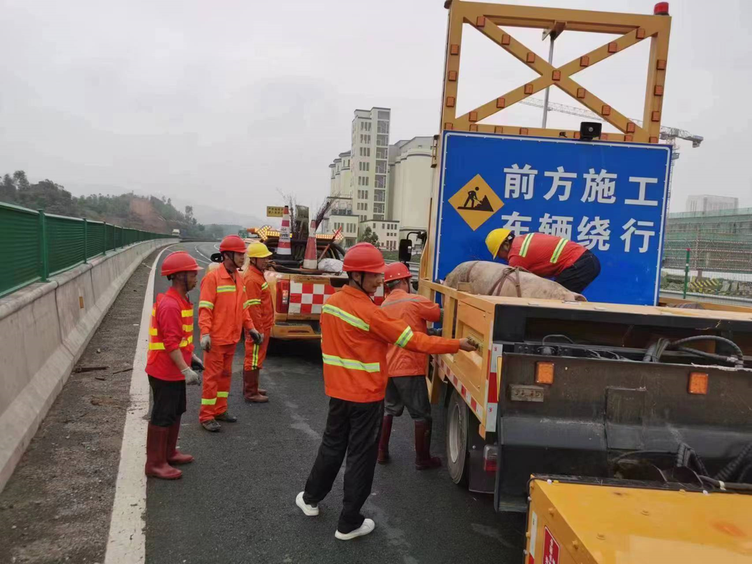 4月2日8時許,惠州市公安局交警支隊高四大隊接途經(jīng)司機報警稱高速上有“二師兄”出沒,執(zhí)勤民警立即趕往長深高速深圳方向K3553+500路段處,發(fā)現(xiàn)3頭“二師兄”。