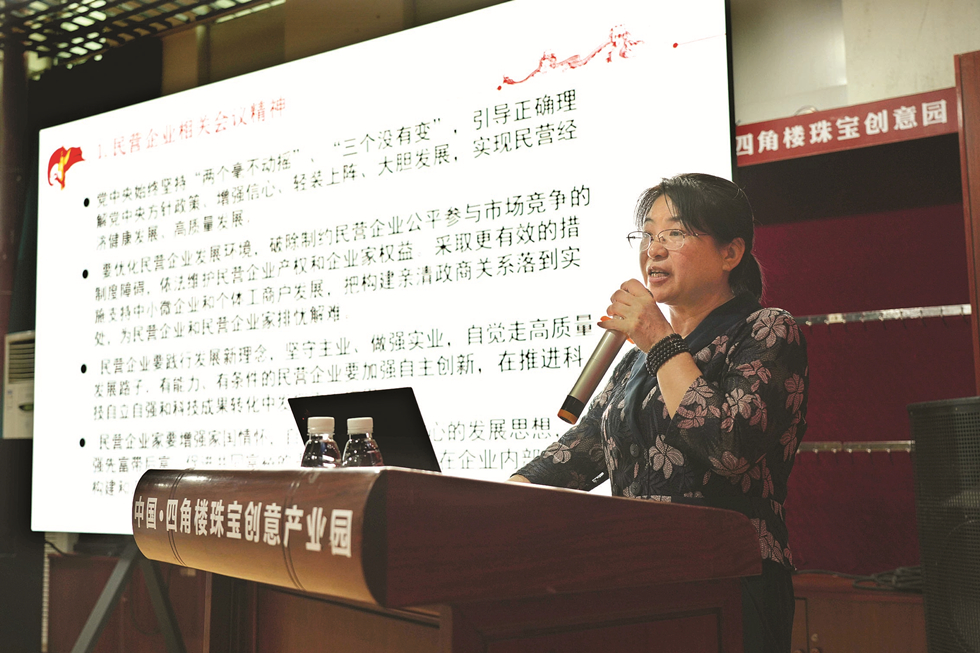 2021年,喻連香科研團隊研發(fā)的寶石加工固廢、廢水資源全值化綜合利用技術,解決了四角樓寶石加工產(chǎn)業(yè)發(fā)展的環(huán)保問題,也給該產(chǎn)業(yè)發(fā)展帶來了新的轉機。四角樓珠寶創(chuàng)意園執(zhí)行董事兼總經(jīng)理葉樹東聆聽宣講會后表示深受鼓舞、倍感振奮。他說,生態(tài)文明建設只有持之以恒地推進,人與自然和諧發(fā)展的新格局才能最終形成。四角樓珠寶創(chuàng)意園將堅定走綠色低碳發(fā)展之路,為高質(zhì)量發(fā)展增添新動能。