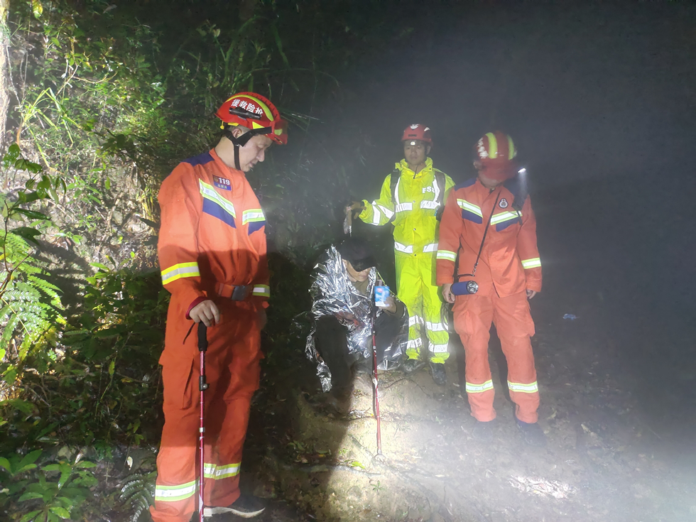 4月3日上午8時許,這名男子自行前往白云嶂盤古廟游玩,在山頂迷路無法下山,被救援人員發(fā)現(xiàn)時,已被困山上一天一夜,身體開始缺水、虛弱、體力透支,但身體未受傷。救援人員在了解被困人員情況后,對其進行安撫,并囑咐其保持體力,保持電話暢通原地等待救援,有突發(fā)情況及時與救援隊聯(lián)系。