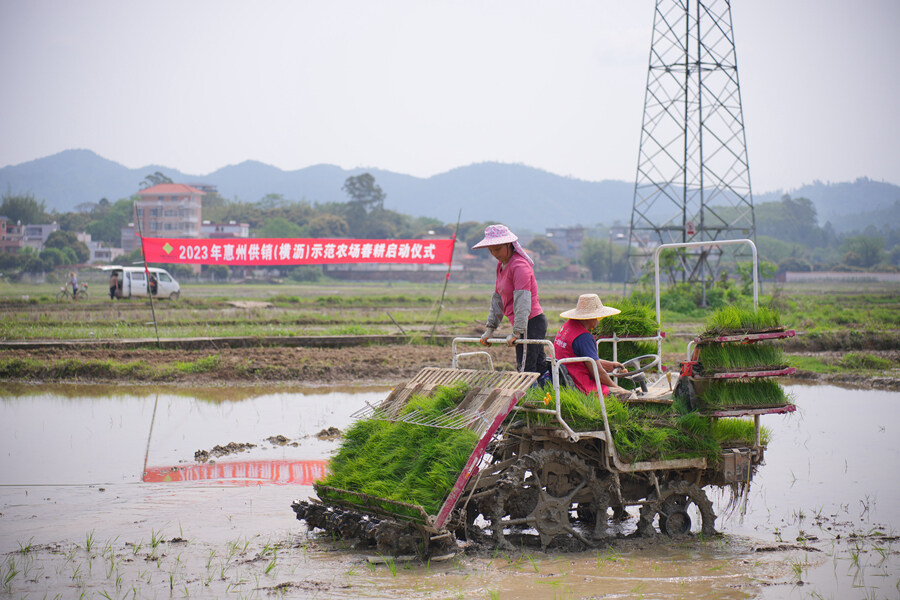 惠州日報(bào)訊 (記者劉建威 通訊員余毅峰 郭權(quán))一車車秧苗運(yùn)到田間地頭,一排排秧苗整齊有序地插入水田……4月12日上午,2023年惠州供銷(橫瀝)示范農(nóng)場春耕啟動(dòng)儀式在惠城區(qū)橫瀝鎮(zhèn)舉行。記者從現(xiàn)場了解到,市供銷社計(jì)劃在全市打造10個(gè)供銷農(nóng)場項(xiàng)目,探索聯(lián)農(nóng)帶農(nóng)富農(nóng)新模式,助力鄉(xiāng)村振興。