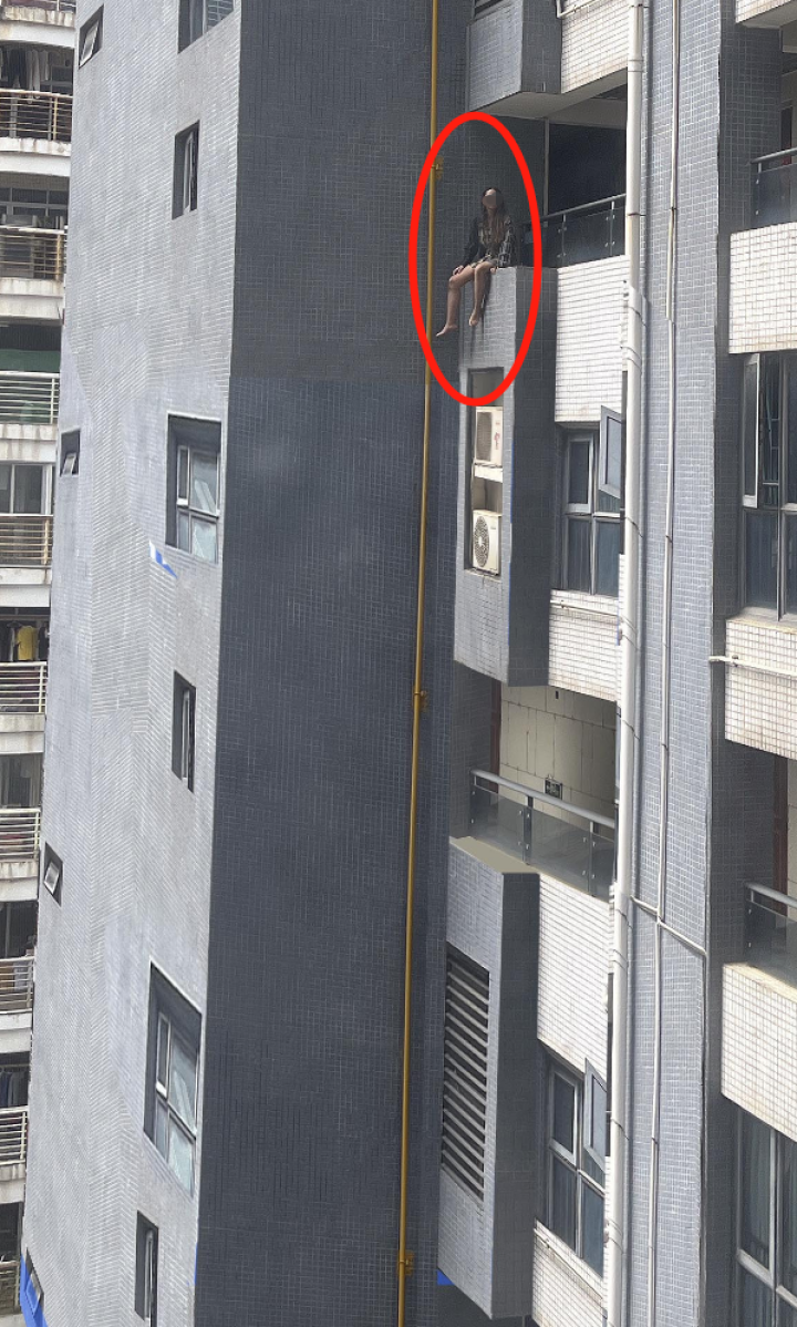 僵持了將近一個小時后,該女子突然情緒激動,一手抓住水管,另一只手離開臺面就快要往下跳。