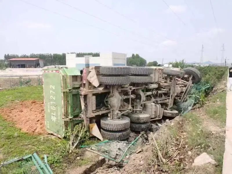 一輛小轎車(chē)和大型泥頭車(chē)在路口相撞