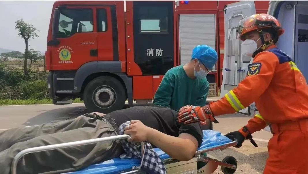 經(jīng)過(guò)約10分鐘的救援后,最終成功將被困司機(jī)救出,并護(hù)送上救護(hù)車(chē),交由醫(yī)護(hù)人員救治。