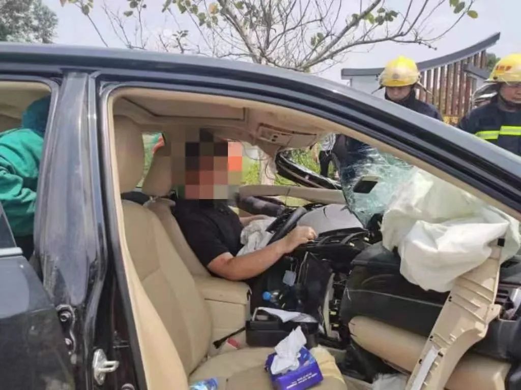 導(dǎo)致小轎車(chē)車(chē)主因車(chē)身變形被卡車(chē)內(nèi)