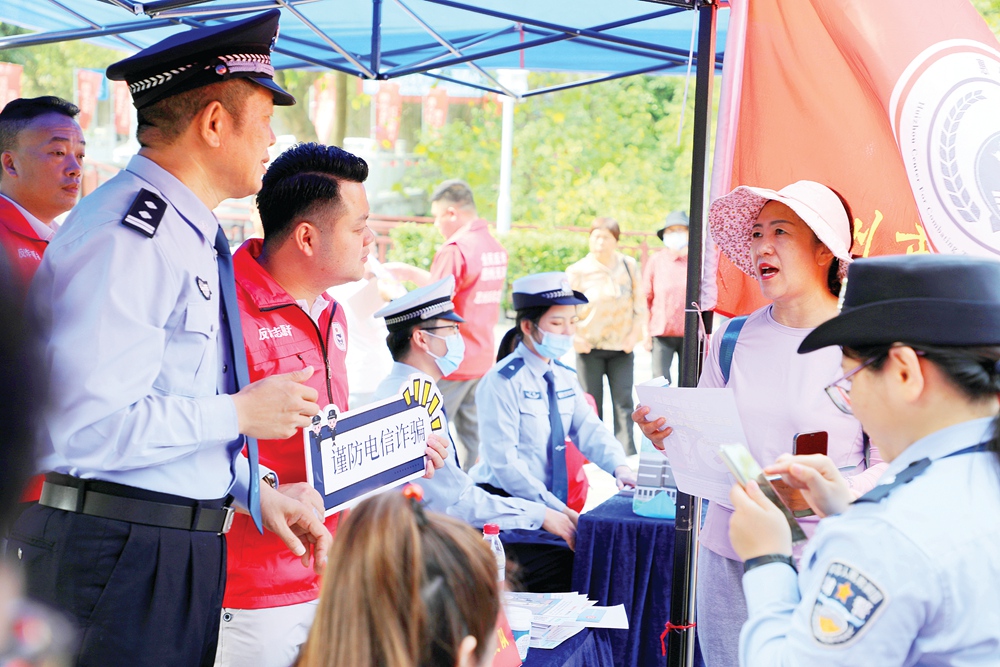 活動(dòng)現(xiàn)場(chǎng),民警、工作人員通過現(xiàn)場(chǎng)解說、咨詢、派發(fā)宣傳彩頁等形式,向游客和群眾講解有關(guān)國(guó)家安全方面的法律知識(shí)和日常自我防護(hù)技能技巧,讓群眾知曉在日常生活中如何維護(hù)國(guó)家安全、榮譽(yù)和利益,如何提高自我防護(hù)能力,樹牢國(guó)家安全觀。同時(shí),現(xiàn)場(chǎng)還開展了反詐、禁毒、交通安全宣傳。