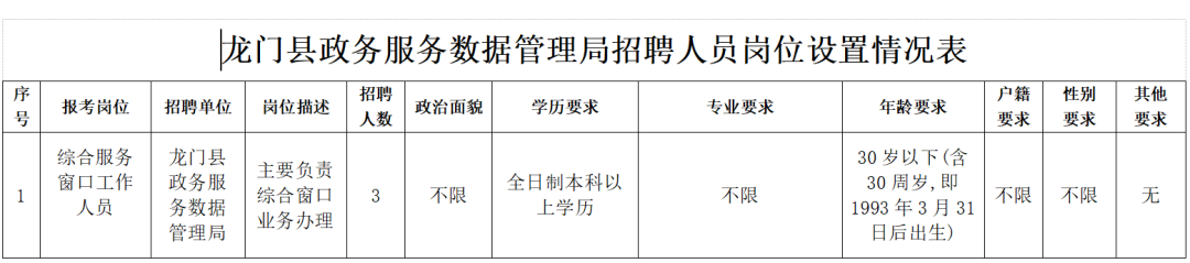 4、【龍門縣政務(wù)服務(wù)數(shù)據(jù)管理局2023年招聘工作人員】