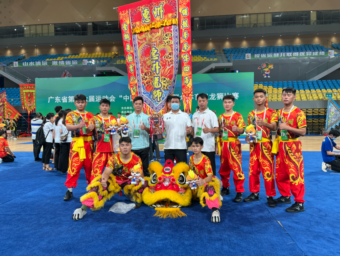 2022年8月8日至10日,廣東省第十六屆運動會群眾體育組龍獅比賽在清遠體育中心體育館舉行,惠州市龍獅代表隊斬獲了1個一等獎,2個二等獎和3個三等獎。其中舞龍自選套路女子組憑借“龍游花海戲仙子”的比賽節(jié)目,以8.7分的成績榮獲一等獎。
